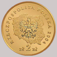 Wizerunek orła, ustalony dla godła Rzeczypospolitej Polskiej, na tle mapy Polski oraz napisy: zł 2 zł, RZECZPOSPOLITA POLSKA i oznaczenie roku emisji: 2004. Pod lew± łap± orła znak mennicy.