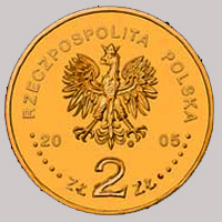 Wizerunek orła ustalony dla godła Rzeczypospolitej Polskiej, po bokach orła oznaczenie roku emisji: 20-05, pod orłem napis: zł 2 zł, w otoku napis: RZECZPOSPOLITA POLSKA, poprzedzony oraz zakończony sze¶cioma perełkami. Pod lew± łap± orła znak mennicy.