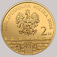 W centralnej części wizerunek orła ustalony dla godła Rzeczypospolitej Polskiej. Z prawej strony napis: 2 zł. U góry półkolem napis: RZECZPOSPOLITA POLSKA oraz oznaczenie roku emisji: 2006. Poniżej orła stylizowany fragment muru miejskiego z blankami oraz z bramą o rozwartych wrotach, z uniesioną kratą w prześwicie. Pod lewą łapą orła znak mennicy.